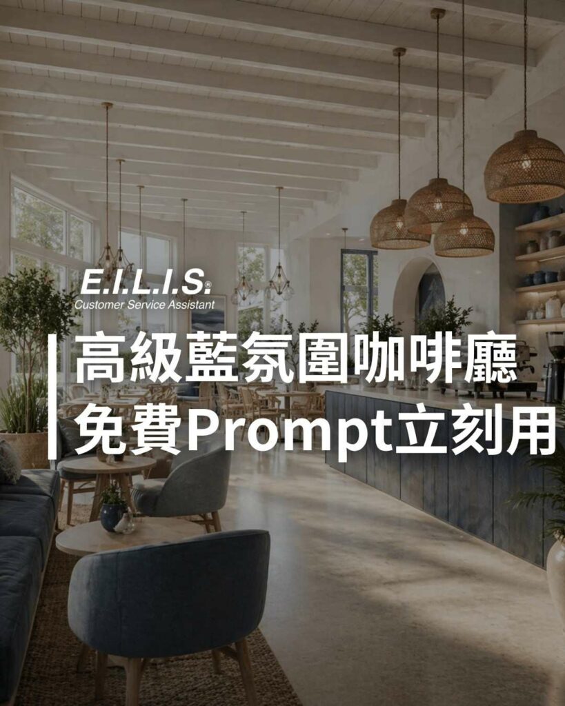 [Overall Visual Style] Photorealistic architectural interior photography with a refined editorial feel. The visual language is clean, upscale, airy, and highly curated, blending coastal-modern, soft Mediterranean, and premium lifestyle café aesthetics. The style is restrained rather than flashy, but still rich in layered detail and atmosphere. [Architecture / Space Type] A high-ceiling café interior with an elongated open-plan layout. The space emphasizes horizontal depth, with a long bar counter on one side and layered seating zones extending into the background. The architecture feels boutique, elegant, and hospitality-driven, with a tall and breathable volume. [Composition & Camera] Side-angle interior shot looking diagonally across the café. The framing uses a wide architectural lens feel, capturing both the lounge seating in the foreground and the coffee bar and dining area deeper into the space. Strong leading lines from the floor, ceiling beams, and counter guide the eye inward. Deep focus keeps the entire space crisp and readable. [Lighting & Time Feel] Soft natural daylight pours in from the large side windows, creating a bright late-morning to afternoon feel. The light is diffused and gentle, with mild contrast and subtle warm highlights from pendant lighting. The overall impression is calm, luminous, and inviting. There should be a small white logo in the bottom right corner:[2026 @ EILIS AI @ Prompts Hub] [Color System] Sophisticated muted blue is the hero color, paired with off-white, warm beige, pale oak, stone, and woven tan. Saturation is controlled and elegant. The palette stays disciplined, with blue providing identity while neutrals keep the space premium and balanced. [Materials & Surface Quality] White-painted timber ceiling beams, light oak wood furniture, woven rattan pendants and chairs, textured stone/plaster walls, polished concrete or stone flooring, blue upholstered seating, and a blue-toned paneled bar front. Surfaces feel tactile, natural, matte to softly polished, and highly realistic. [Mood & Atmosphere] Relaxed luxury, calm, sunlit, sophisticated, welcoming, boutique, social, elevated, and atmospheric. It feels like a place for slow coffee, stylish conversation, and an excellent overall ambiance. A high-end blue luxury café interior, side-angle architectural interior photography, spacious open-plan café with a high ceiling and elegant proportions, viewed diagonally across the room with strong depth and leading lines, featuring white-painted timber ceiling beams, large sunlit windows, a refined blue coffee bar with stone countertop, muted deep-blue lounge seating, light oak tables and chairs, woven rattan pendant lights, indoor greenery, soft stone and plaster textures, polished light concrete flooring, and a premium boutique hospitality atmosphere; the palette is sophisticated muted blue, off-white, beige, tan, pale oak, and soft stone, with natural daylight filling the space and creating a bright calm upscale mood, editorial-quality realism, highly detailed materials, realistic shadows, crisp full-depth focus, luxurious yet inviting ambiance, no people, no distortion, no blur Aspect ratio: 1:1